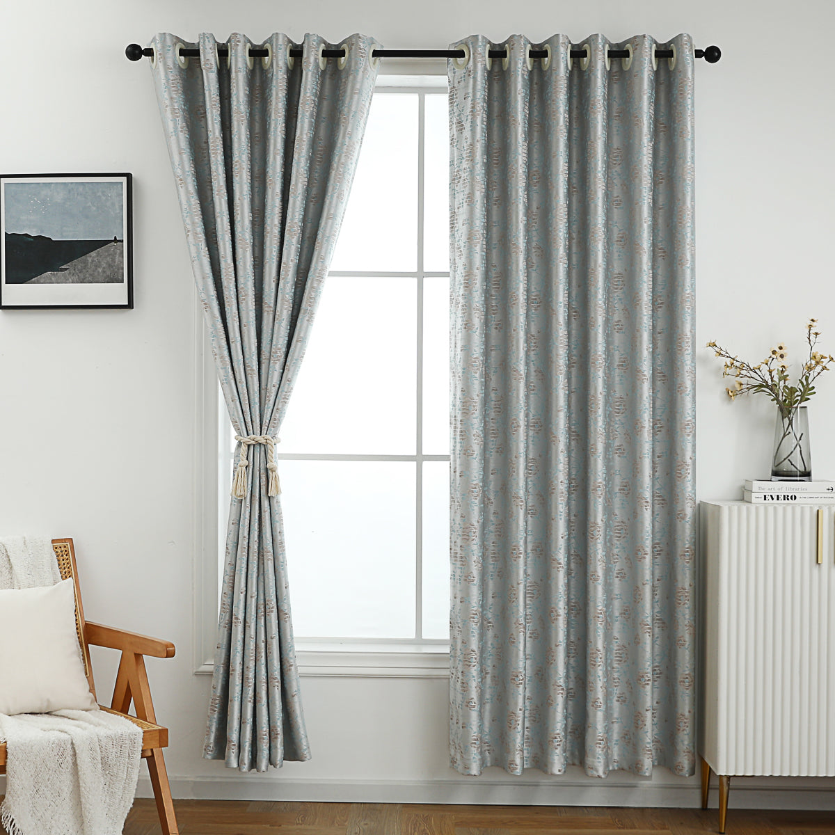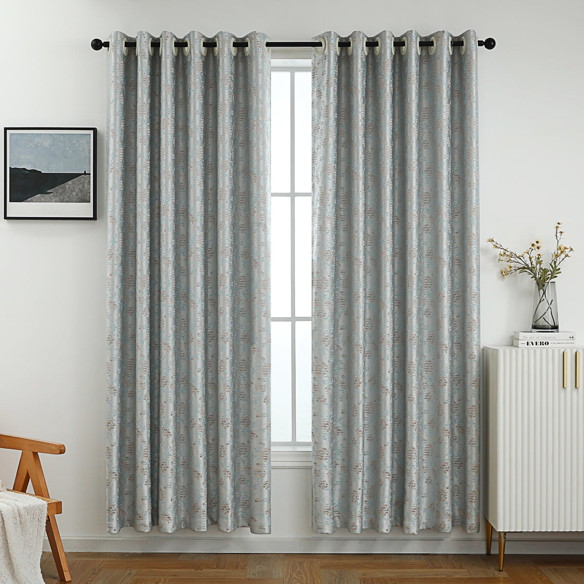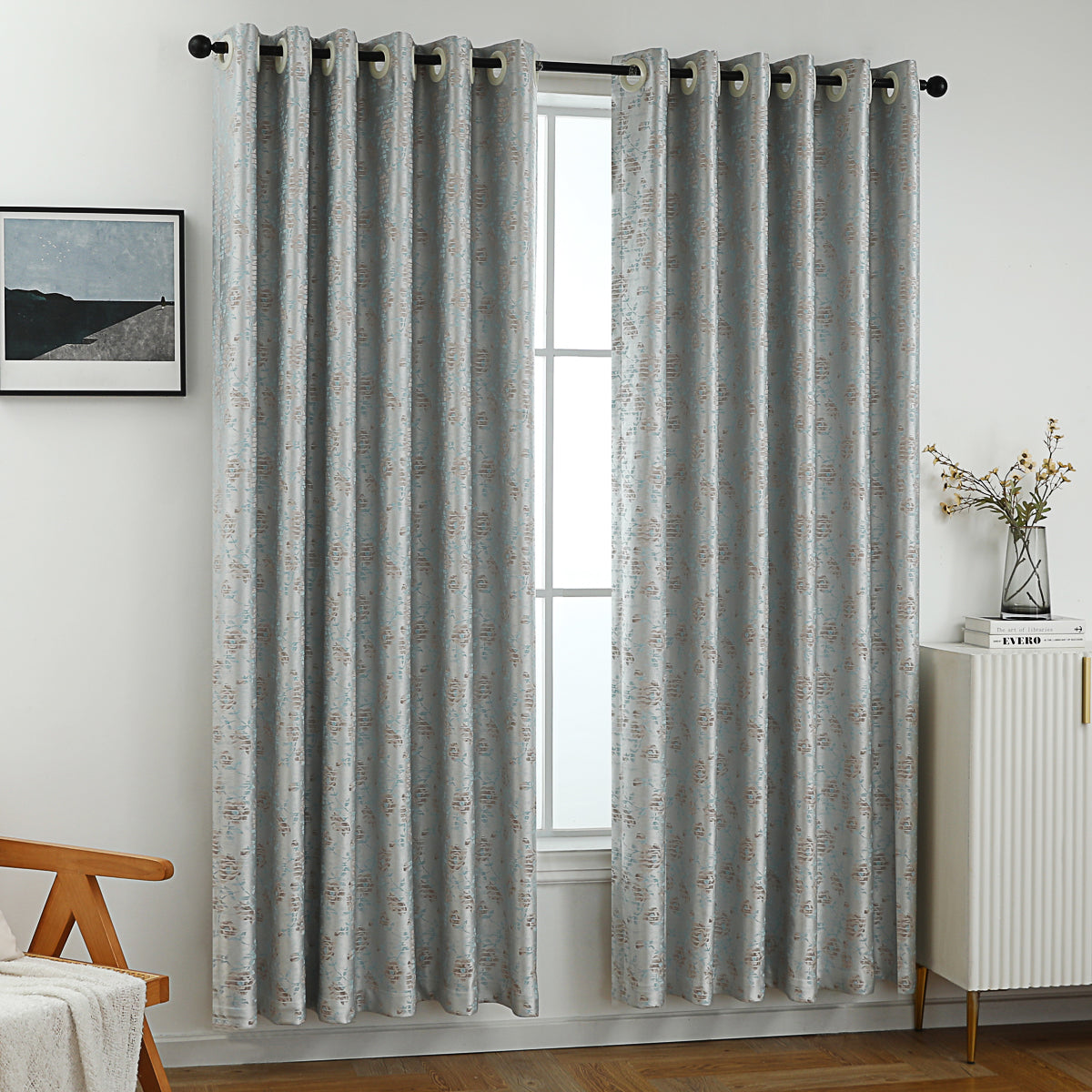 Featuring an elegant floral print in soothing light gray, this curtain adds a touch of charm and femininity to any room. Designed to block out 90% of light, it provides privacy while creating a warm and inviting atmosphere. Perfect for bedrooms, living rooms, or any space in need of a cozy, stylish upgrade. The curtain is equipped with 8-12 metal grommets for quick and easy installation.