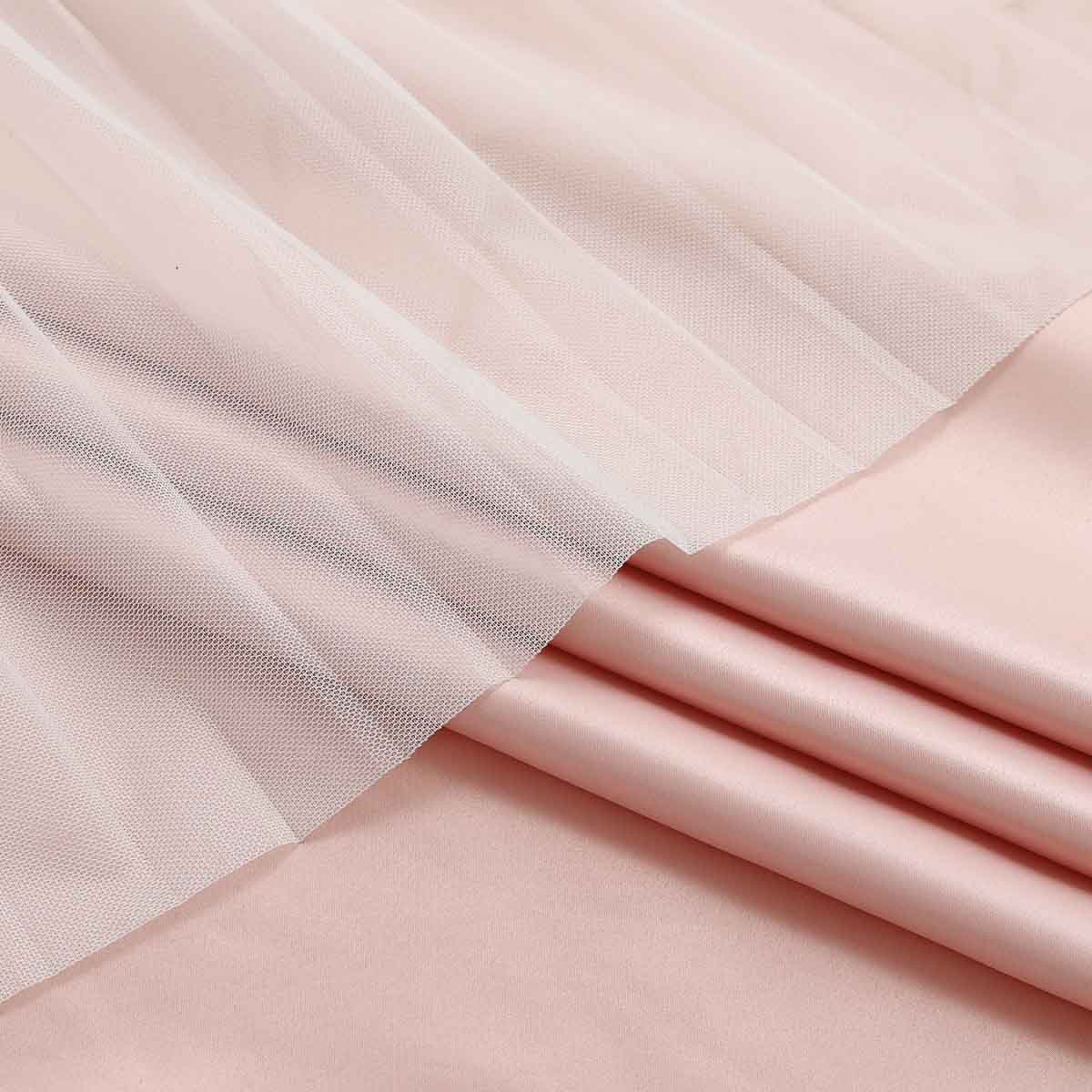 This double-layer curtain is a mix & match sheer lace and backdrop grommet curtains. The backdrop controls light and increases privacy. The sheer features tulle-like hem and embroidered lace that enhance your space with subtle texture and add an elegant touch. Made of easy to care for polyester.