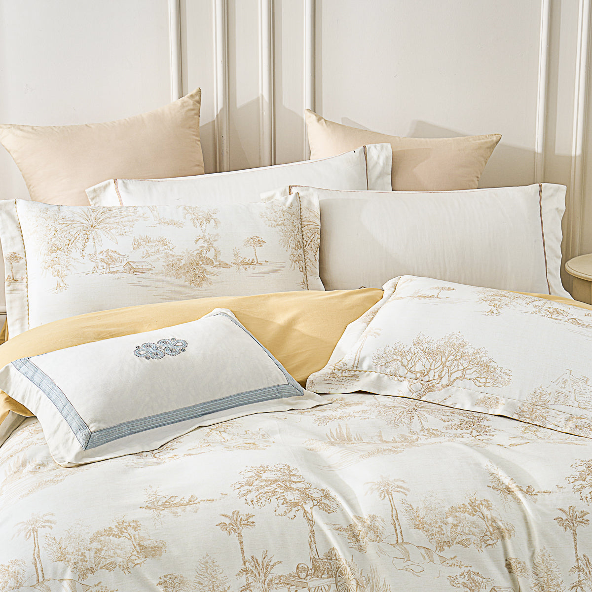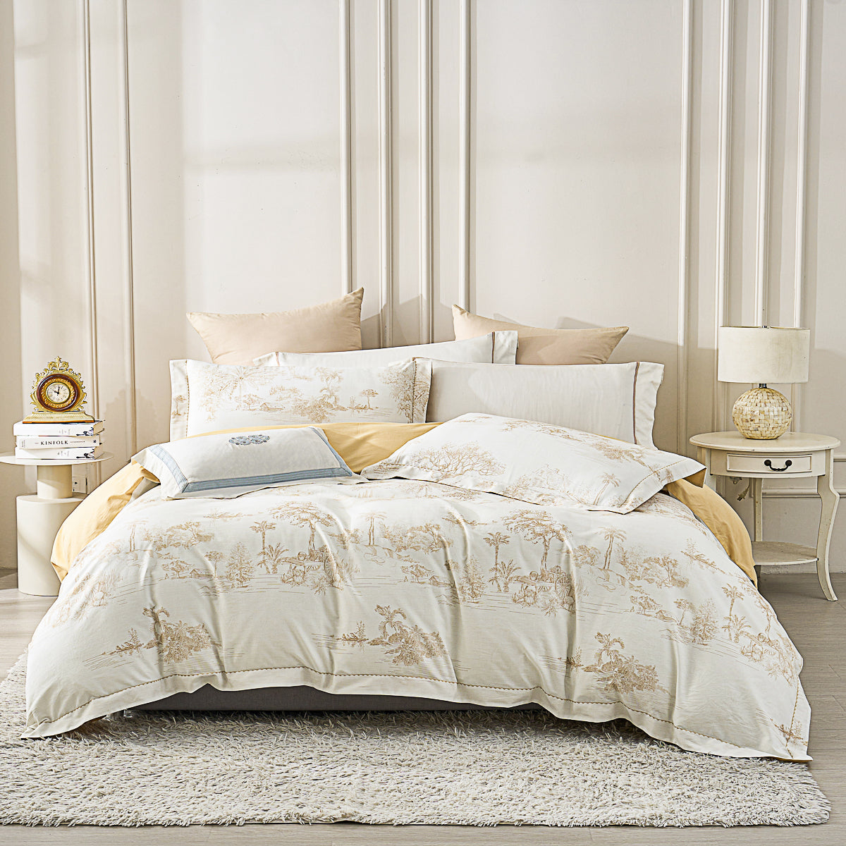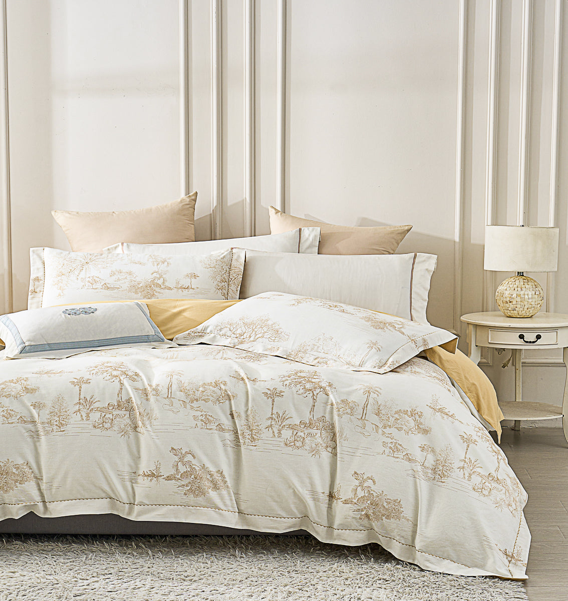 Shams x 2: Each sham has an extra 5cm wide decorative edge. Envelope closure on the side of the reversed side.