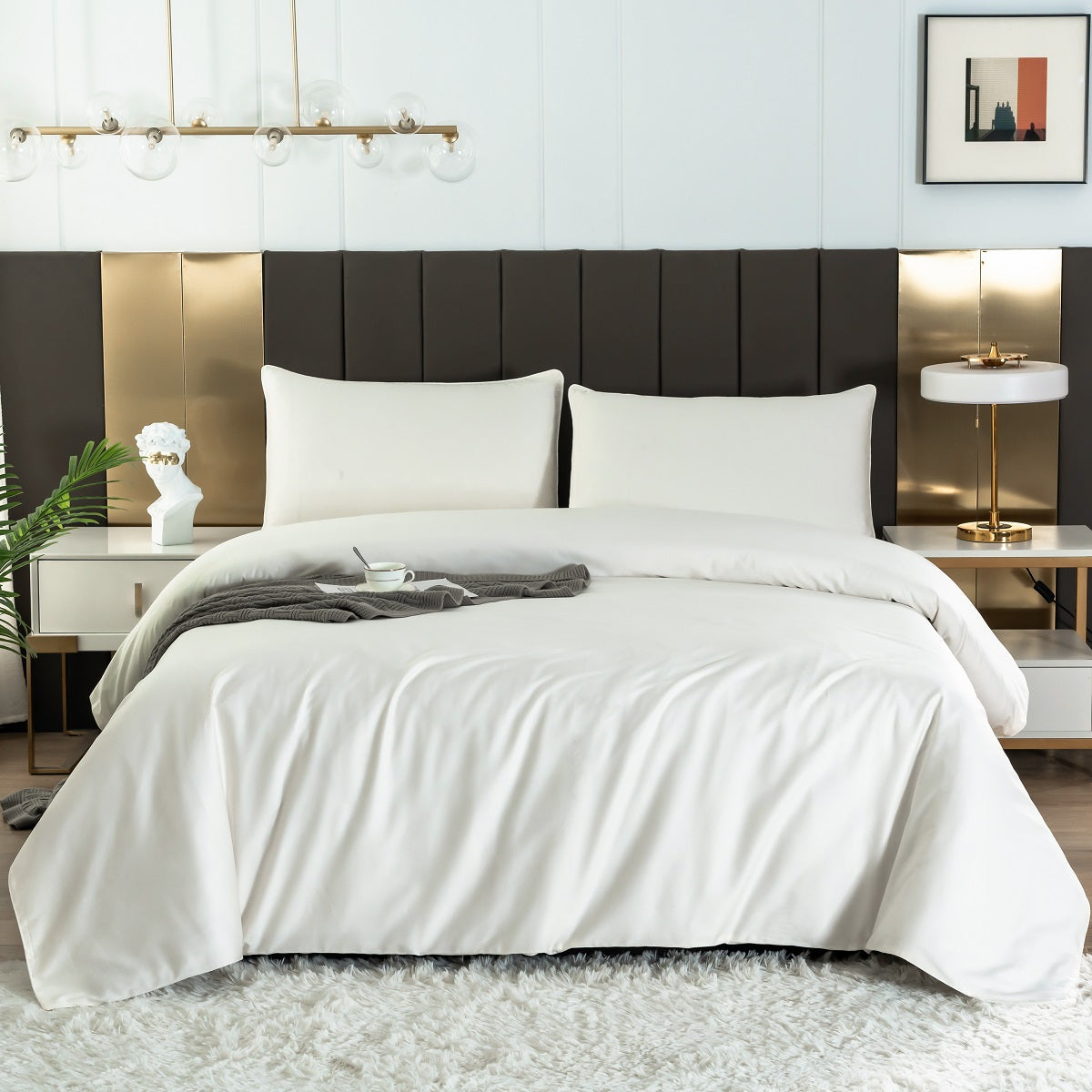 Snow White Solid Color Premium Cotton Fitted Sheet Set