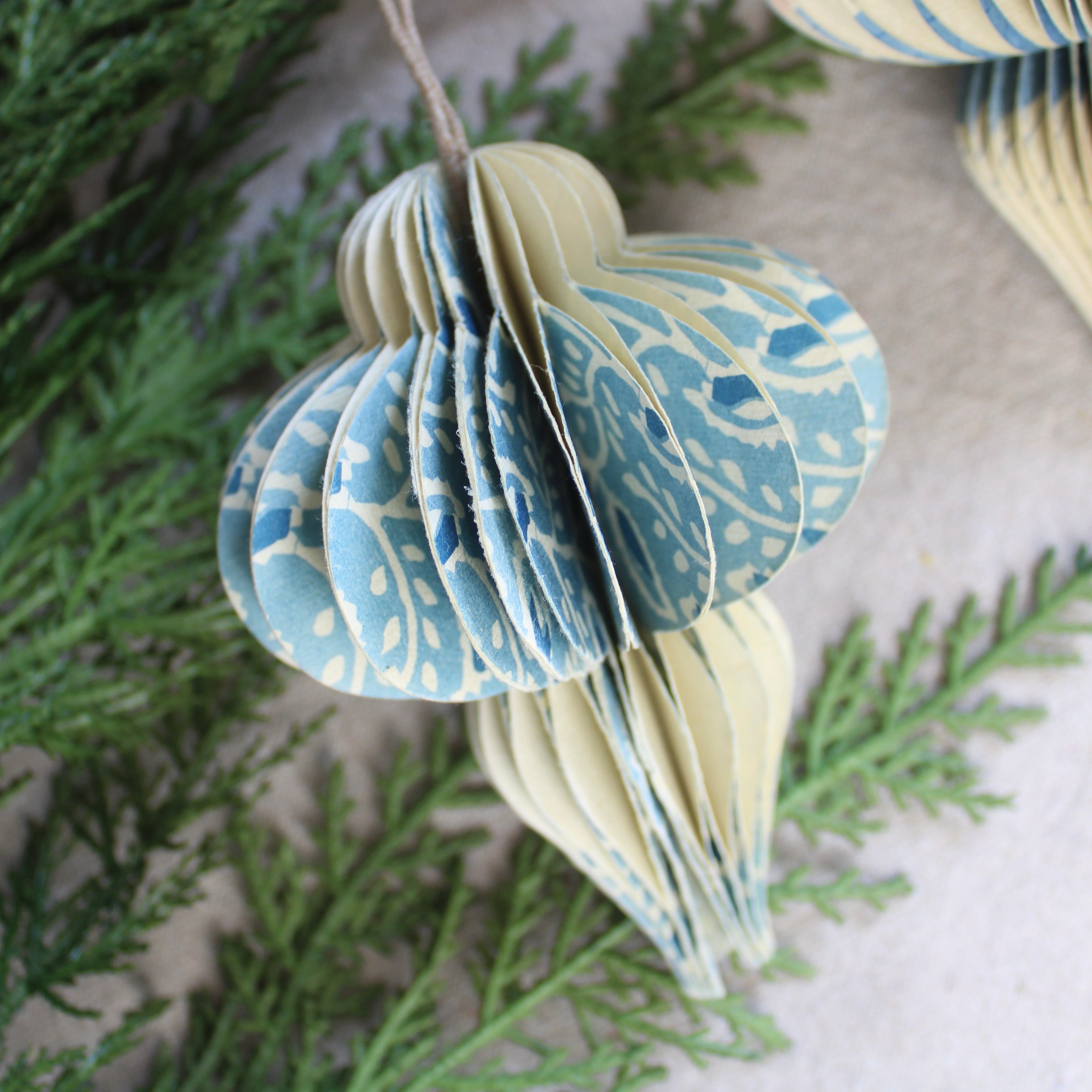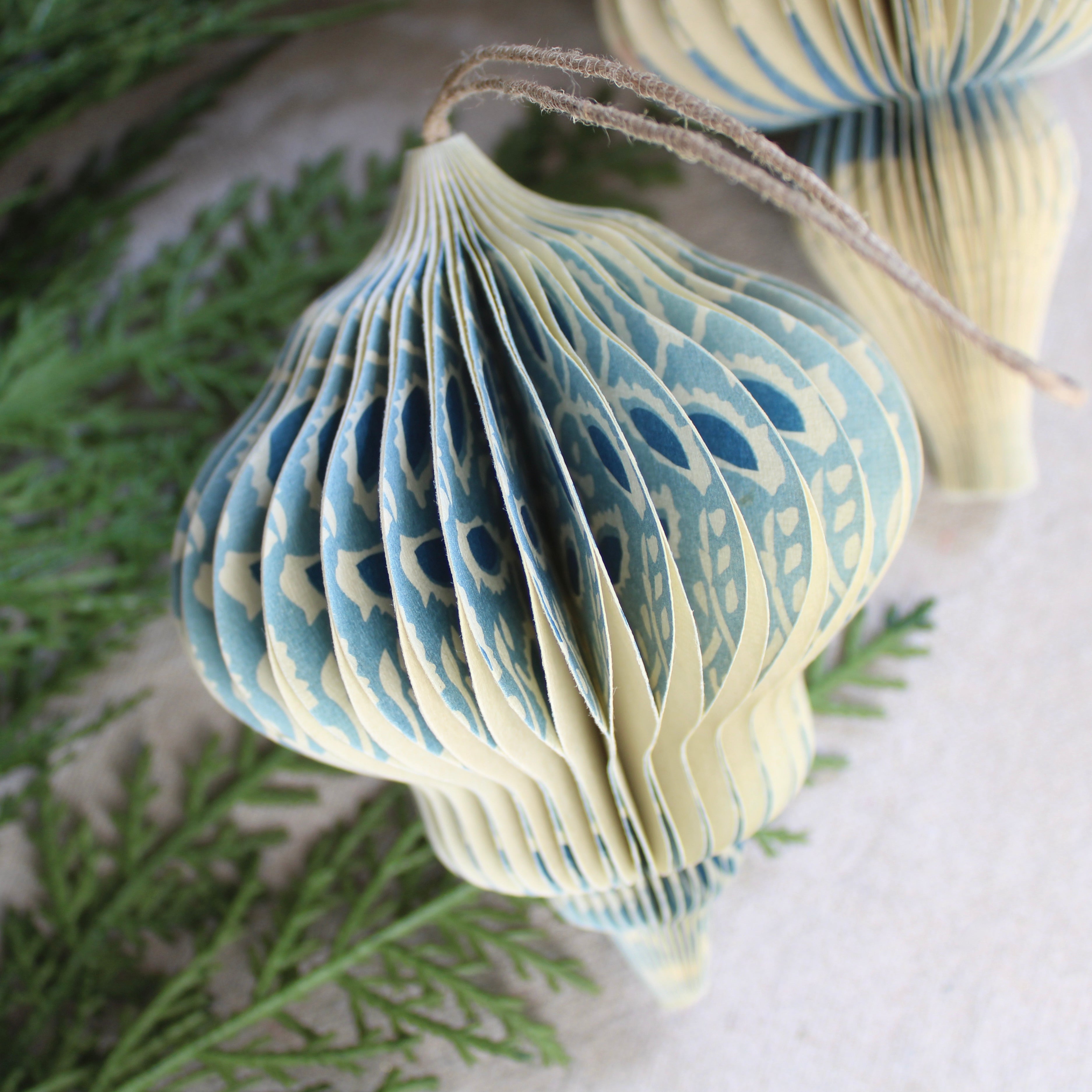 Timeless style meets artistic patterns in this updated classic. Available in green and blue, these pieces make a unique addition to your holiday collection.