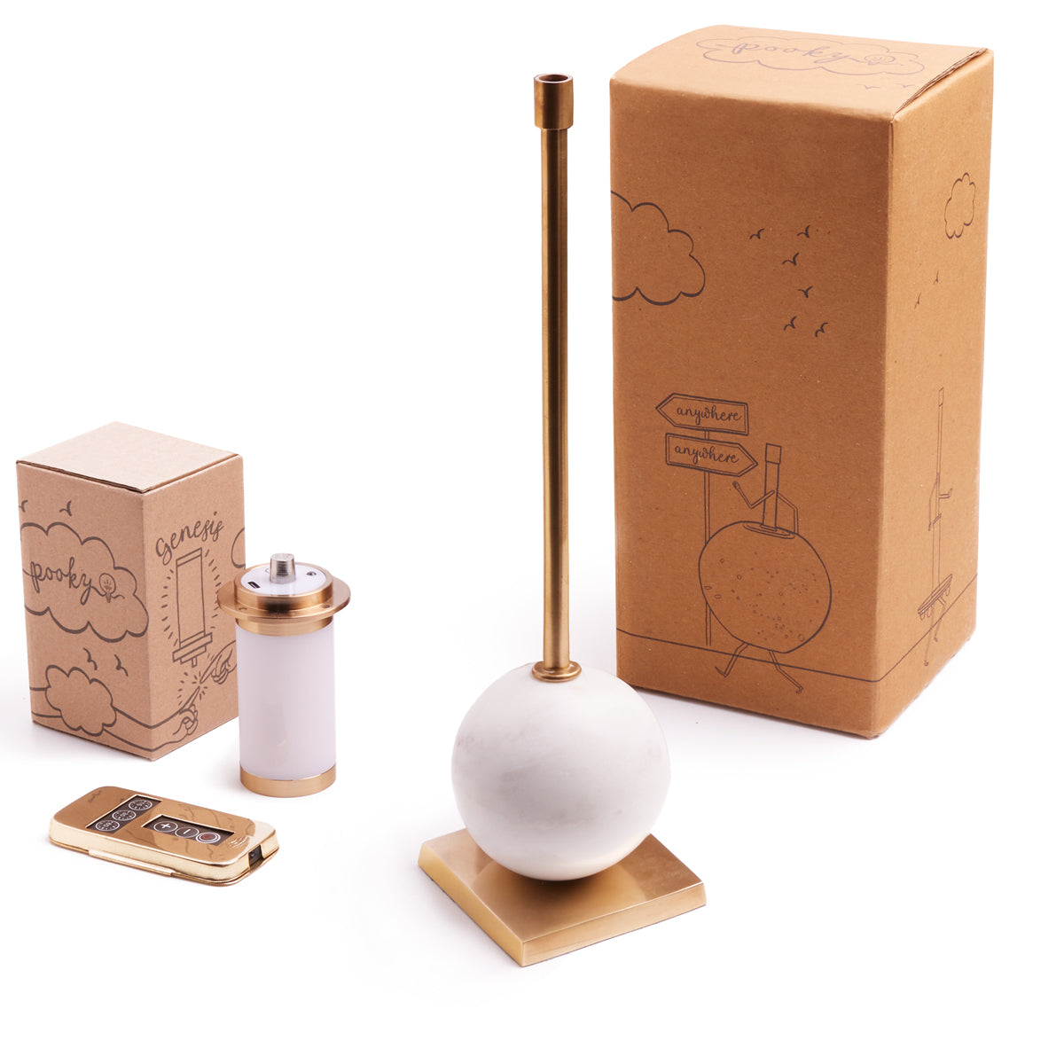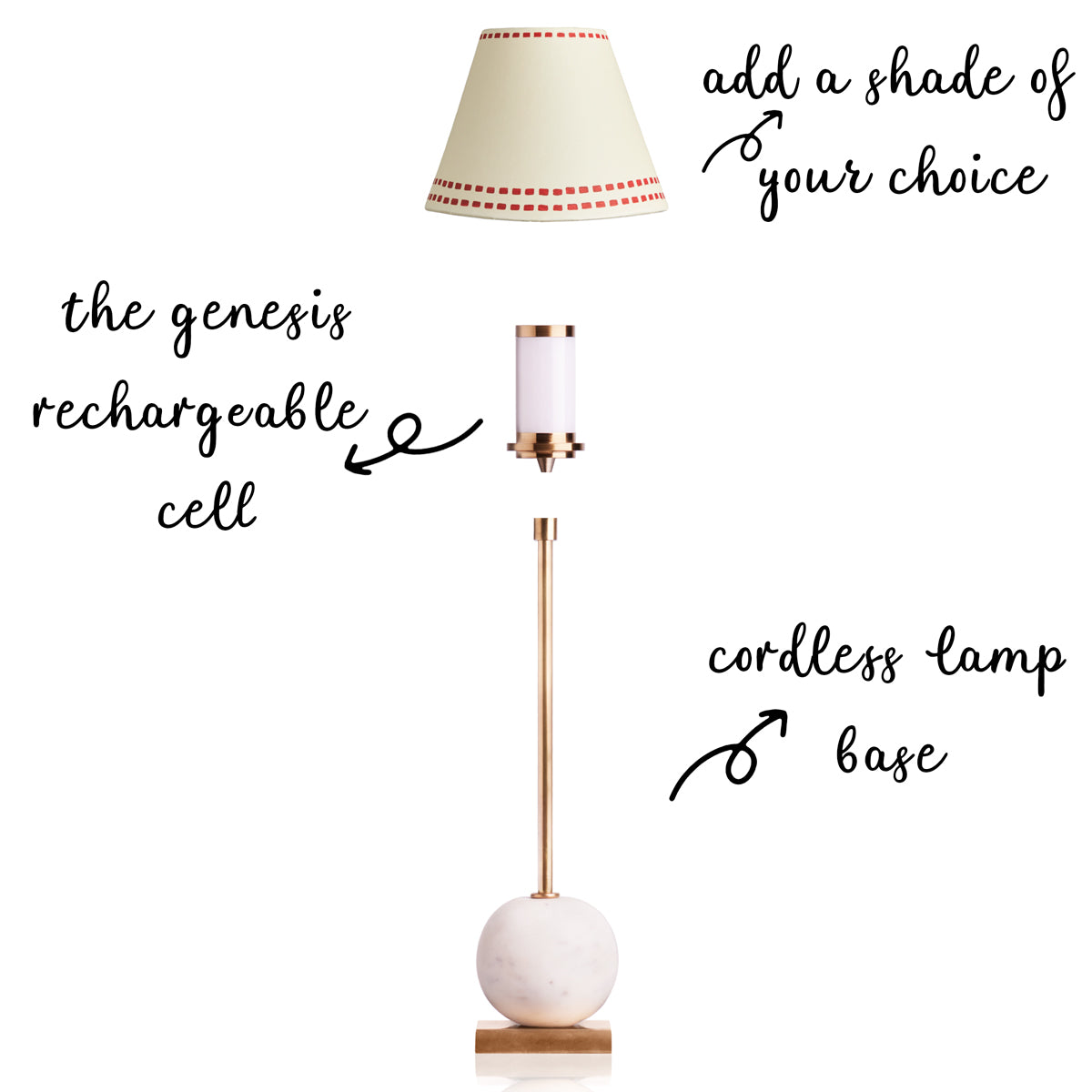 Our Lollie receives rave reviews from all who see it. A bold design, growing from a perfect circle of stunning white veined marble. And critically...cordless. The Genesis cell (supplied with the lamp) has at least 15 hours of charge and a handy little remote. Meet the future.