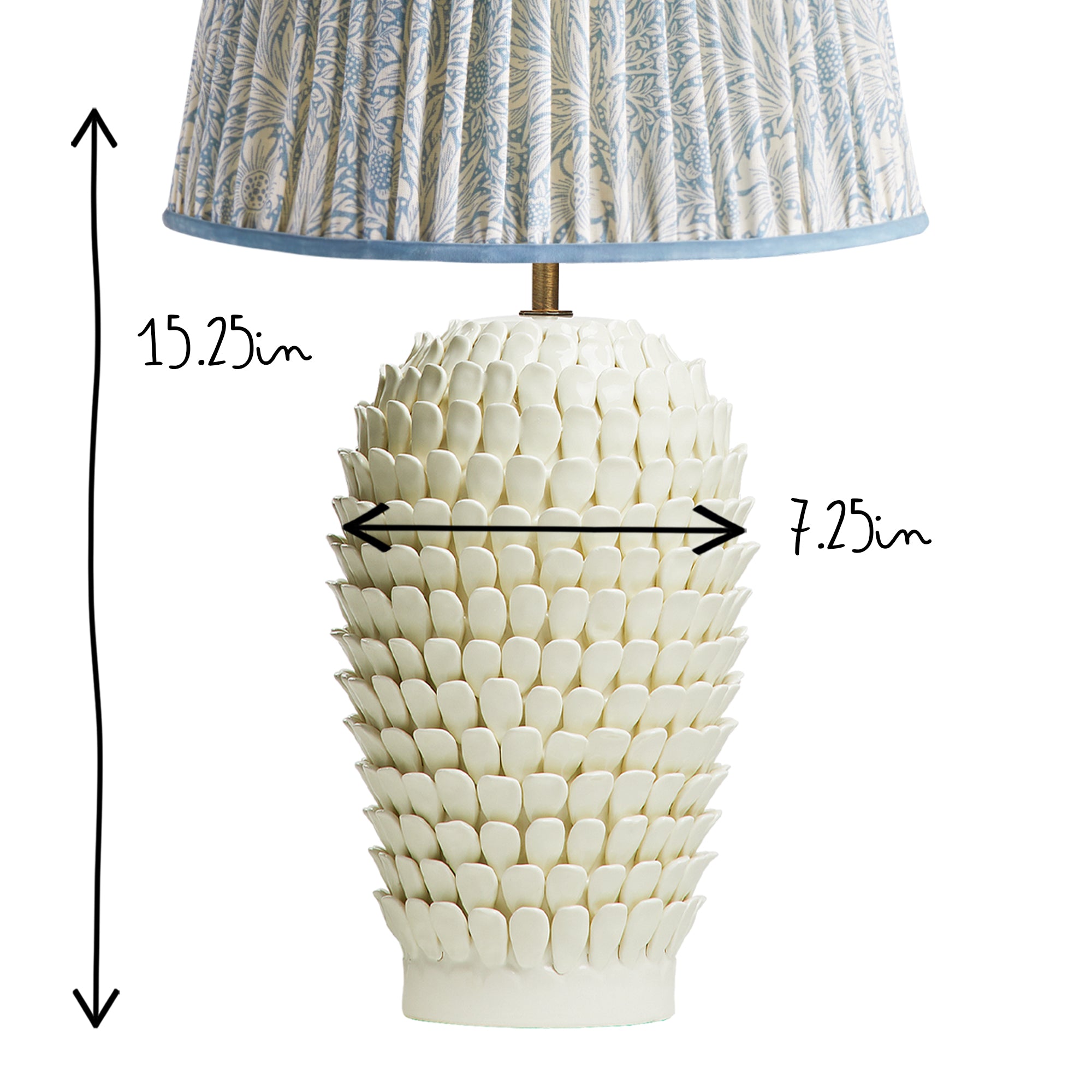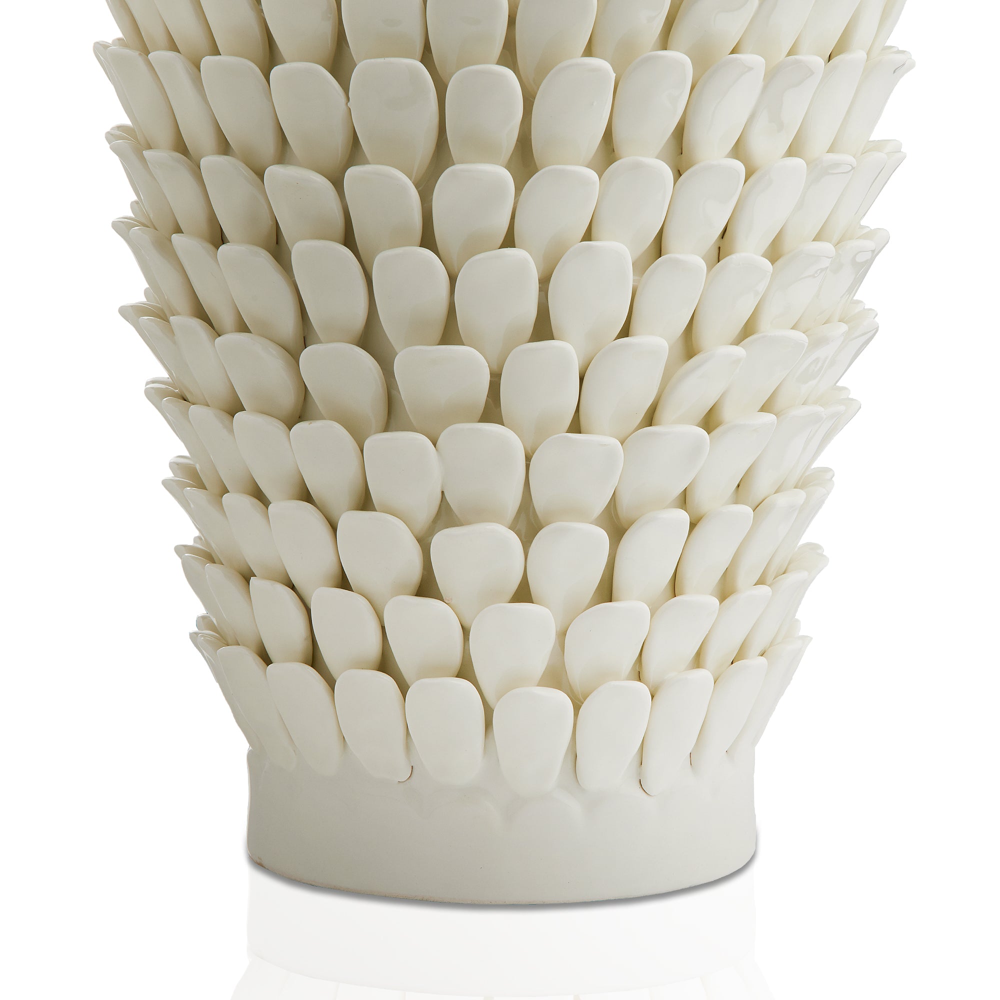 We called this very decorative table lamp Stucco somewhat by mistake. It probably had something to do with the fact that we have “stuck” “leaves” onto the outside of this elegant shape. We agonised for a long time in the design process over the size of the leaves, their spacing, and their number...and the exact tonal color. At least a year in the making and we are thrilled with the result. We hope you agree.